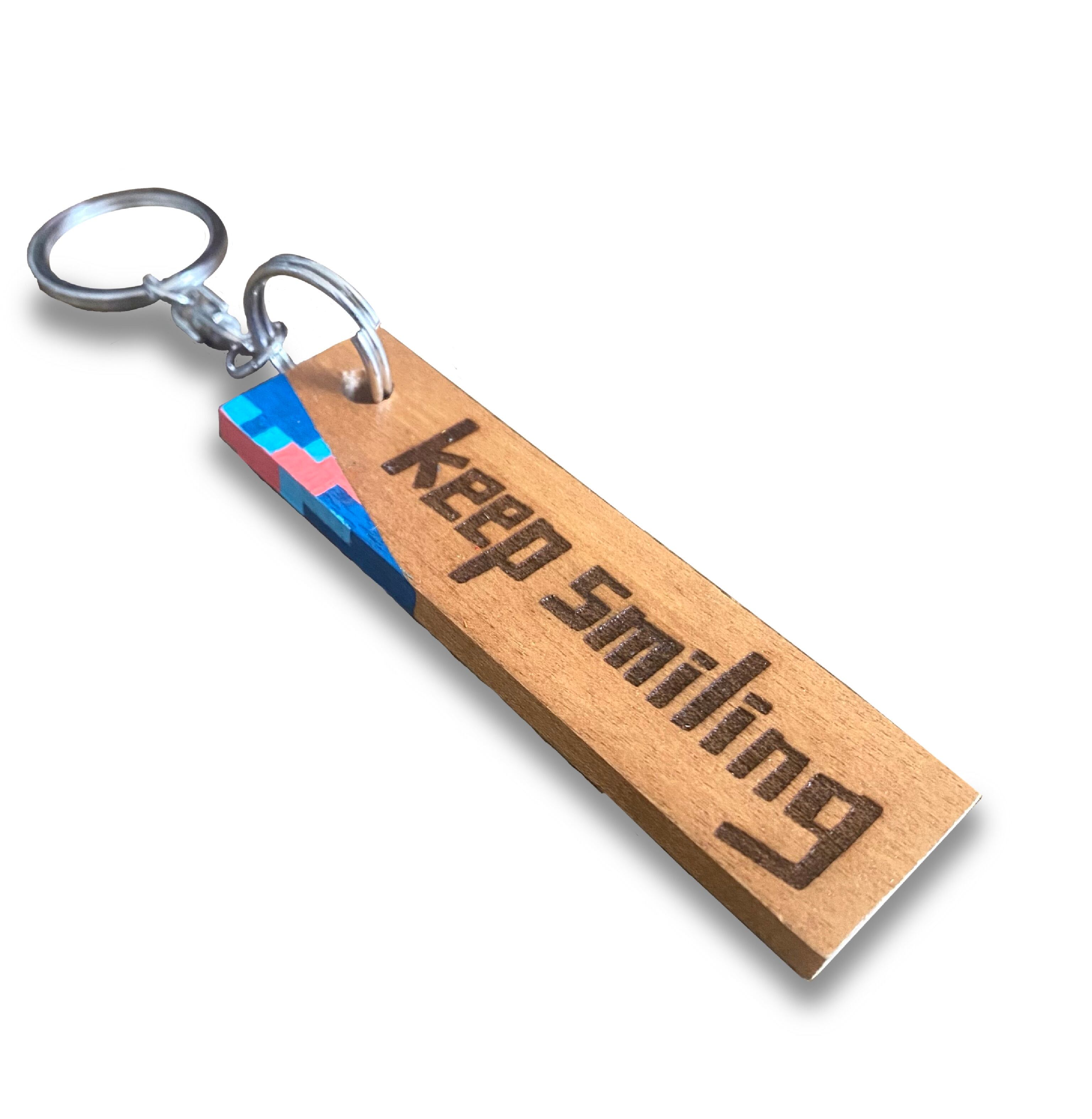 施してくださった木廃材のキーホルダーに